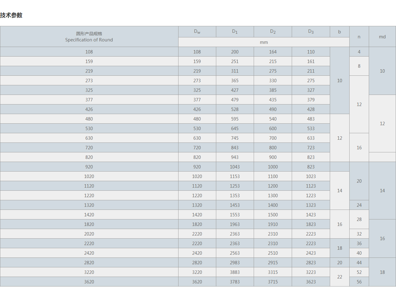 圓形產(chǎn)品規(guī)格 Specification of Round |