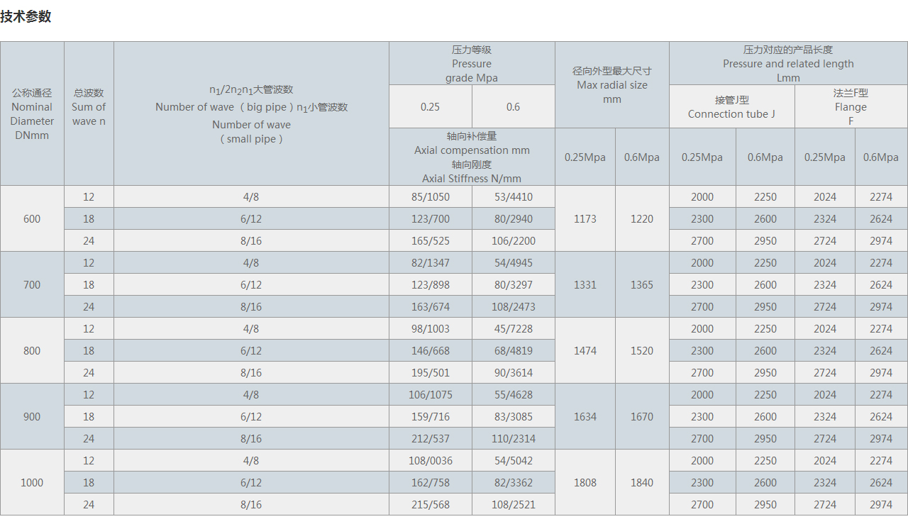 軸向補(bǔ)償量 Axial compensation mm 軸向剛度 Axial Stiffness N/mm |