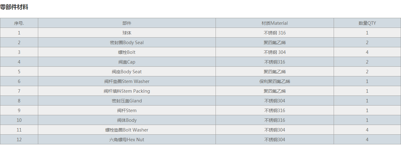 | 2 | 密封圈Body Seal | 聚四氟乙烯 | 2 |