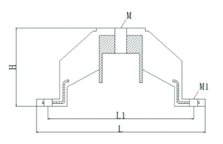 JGD型橡膠剪切隔振器是由內、外鋼套和中間的合成橡膠組成,經(jīng)硫化呈中空圓錐體,橡膠部分受剪切力。固有頻率較低;變型范圍較大;結構簡單、安裝方便??芍苯影惭b在機座下,也可用地基螺栓固定安裝,使用安全可靠;