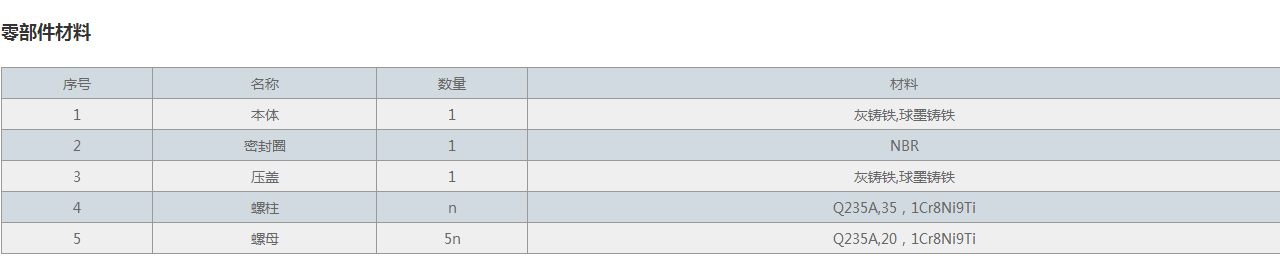 | 3 | 壓蓋 | 1 | 灰鑄鐵,球墨鑄鐵 |