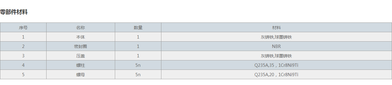 | 3 | 壓蓋 | 1 | 灰鑄鐵,球墨鑄鐵 |