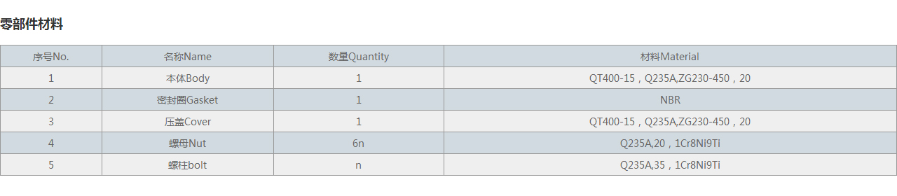 | 3 | 壓蓋Cover | 1 | QT400-15,Q235A,ZG230-450,20 |